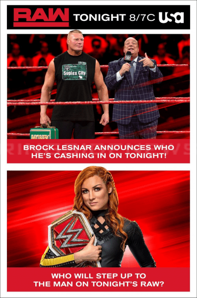 They promoted that Brock Lesnar will make his Money In The Bank cash-in decision and someone is going to be stepping up to Becky Lynch. If the trajectory of WWE’s booking is any indication of things the answer to those questions is: Seth Rollins and Lacey Evans respectively.