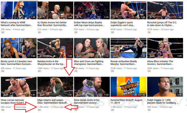 You can check out a screenshot from the videos below so you can see the difference and how the clicks are spread out among other Summerslam moments.