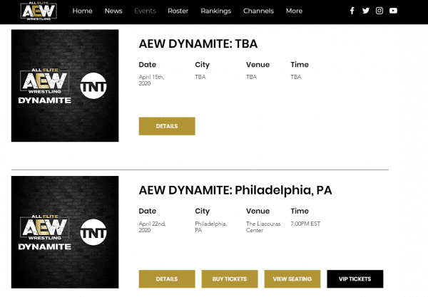 You can check out a screenshot below. As you can see AEW Dynamite goes from being listed as “TBA” to actually having a location listed.