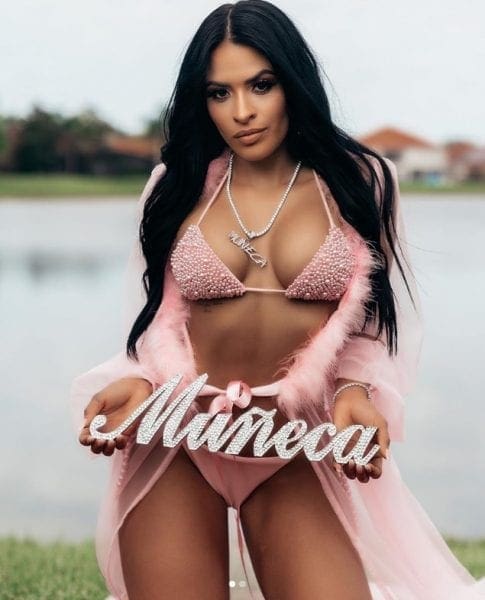 While posing in her skivvies, Zelina Vega held a sign saying “Muñeca” which translates to “doll” in English. She also called attention to her YouTube channel in the process.