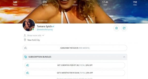Sunny has an Only Fans account with various pricing options for different membership lengths. She doesn’t get the entire $29.99 monthly subscription price. Only Fans takes a 20% cut. She still has 798 fans. Some of them likely signed up with different subscription plans.