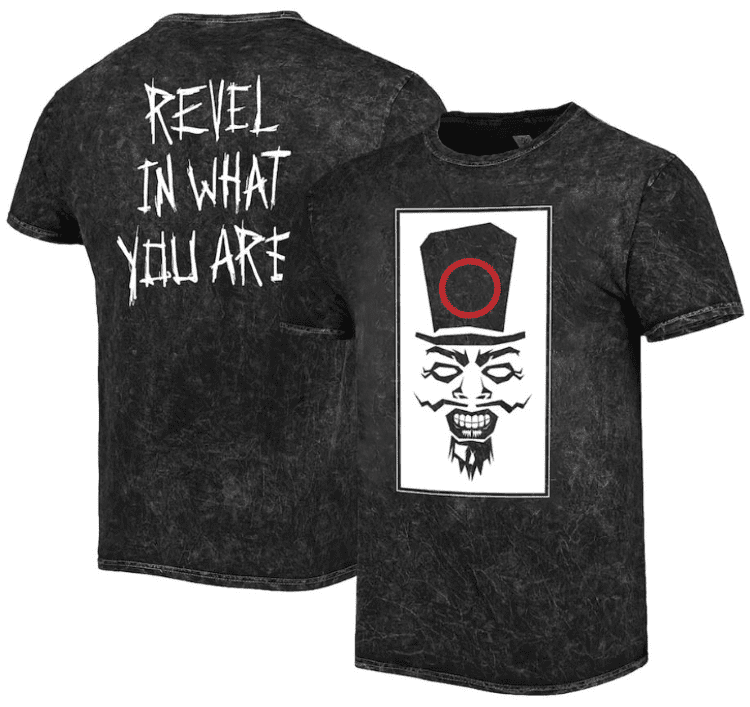WWE Shop has released a new Uncle Howdy t-shirt. The shirt features a Howdy face on the front with Bray Wyatt’s red circle. “Revel In What You Are,” is written on the back.
