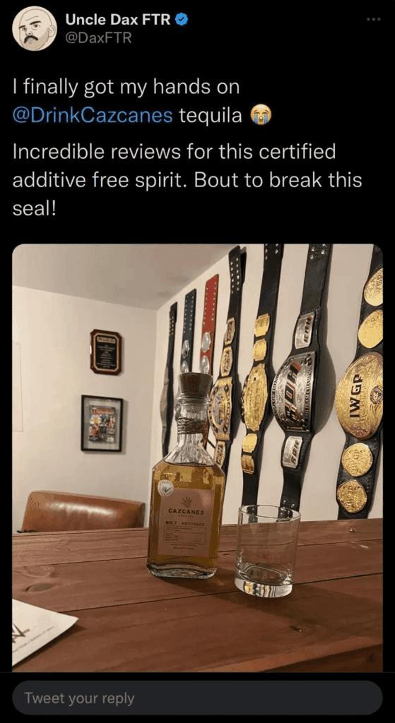 Since their hiatus, fans have speculated whether FTR would return to WWE. Interestingly enough, in a now-deleted tweet, Dax Harwood uploaded a photo of tequila on his desk. What’s interesting is the fact that there was a WWE logo in the left corner of the photo.