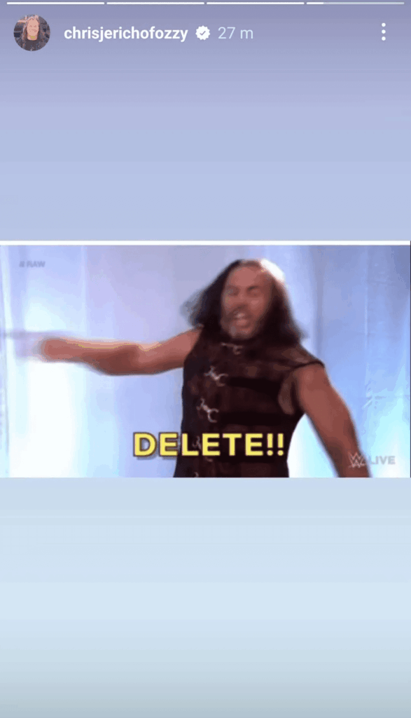 Le Champion wasted no time in replying back to CM Punk’s story, which the latter had quickly deleted. Makin fun of that fact, Jericho simply used a Matt Hardy ‘Delete’ GIF as his response.