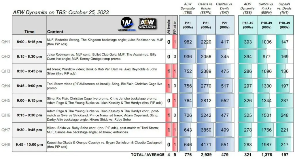 "AEW Dynamite averaged 774,000 viewers on TBS on Wednesday, the lowest since June 2022."