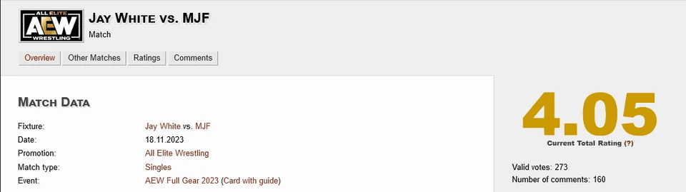 Some fans were upset about the match getting changed in the middle of the event. Others complained about how MJF wrestled such a long match after selling an injury. Either way, they found a way to give it a pretty low rating.