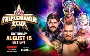 Joaquin Wilde entered next. Corey Graves noted he had competed at TripleMania before as DJ Zema Ion. Wilde hit DDTs on both opponents and tried a double pin for a two-count. Abismo Negro Jr. was out next, followed by Taurus (not AEW’s Black Taurus). Taurus took control of the ring. Wilde hit a huracanrana on Abismo. Taurus then used a Giant Swing to send Wilde into a dropkick from Abismo.