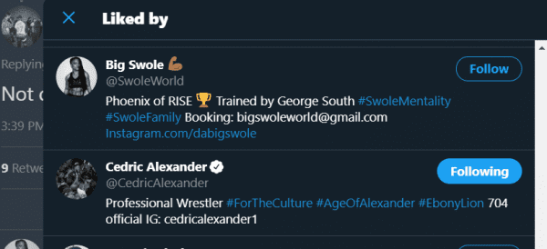 We have yet to hear any reply from Cedric Alexander about this comment. He would have a lot to say about this subject. Interesting enough, both Big Swole and Cedric Alexander liked ACH’s reply.