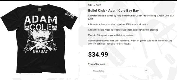 Cole uploaded a new version of his older Bullet Club t-shirt to PW Tees. He is still under WWE NXT contract. He is still the NXT Champion, but now fans can buy a throwback Adam Cole shirt as well.