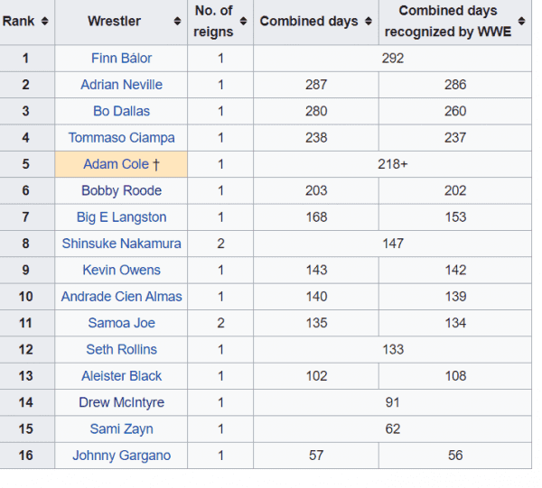 You can check out the list of top NXT Title reigns below. It’s pretty interesting to see some of those numbers. The fact that Bo Dallas currently holds down the third longest reign is pretty interesting.