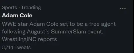 Cole’s name trended in a big way when the news broke about his contract status. Many fans threw out AEW references and jokes were also made about how he is going to be reincarnated on Being The Elite. His character was killed off of that weekly YouTube show..