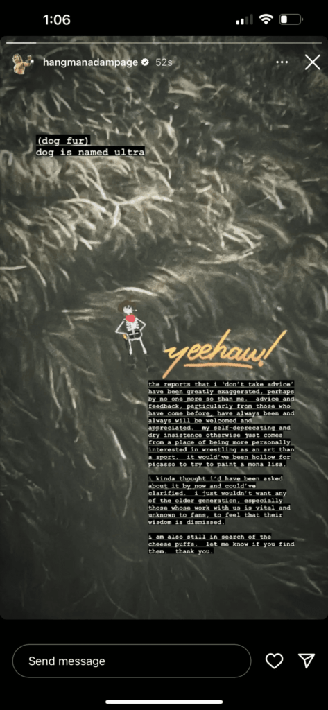 It was reported that AEW is trying to plan out CM Punk’s return and it will be on the upcoming AEW Collision show. In light of this, Adam Page recently took to his Instagram story and unloaded a post, where he finally responded to criticism about his comments about not taking advice from veterans.