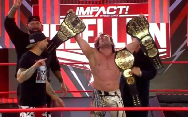 Kenny Omega continued his mission as a belt collector at Impact Wrestling’s Rebellion pay-per-view. The Cleaner is now Impact Wrestling World Champion, and AEW is very proud of him.