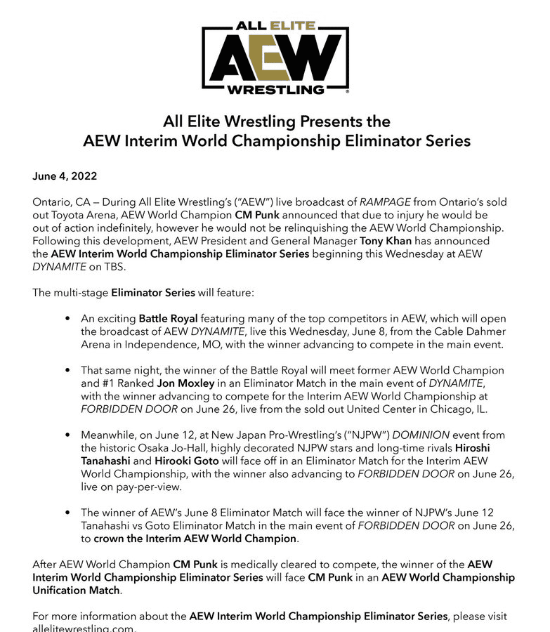 AEW was in a tricky situation when CM Punk revealed that he is injured and in need of surgery. Punk isn’t expected to be out of action for long, because he is still World Champion. That being said an Interim Champion will still need to carry the title.