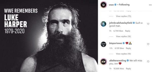 AEW even commented on WWE’s official Instagram account as they responded to a Brodie Lee tribute graphic. “We will miss you, Jon” the AEW account said on WWE’s post. That comment has garnered 10,668 likes as of this writing, so fans took notice of this as well.