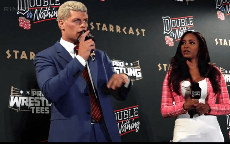 Cody said he wanted to talk about women’s wrestling and then the 24/7 Title. Brandi kept cutting him off saying “do you want to talk about something that they won’t click bait.” Funny.