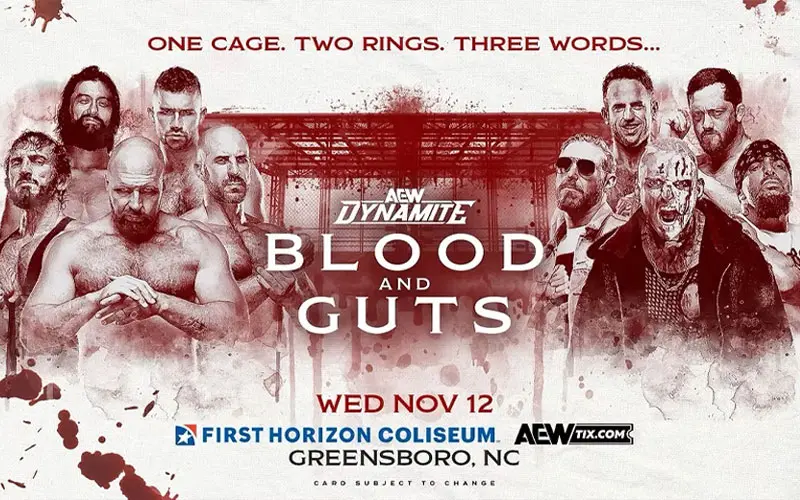Tonight’s AEW Dynamite Blood And Guts airing November 12, 2025, promises an action-packed night live from the First Horizon Coliseum in Greensboro, North Carolina. The show sees AEW World Champion “Hangman” Adam Page take on The Opps’ AEW World Trios Champion Powerhouse Hobbs in a Falls Count Anywhere Match. Plus, The Death Riders (Jon Moxley, Claudio Castagnoli, Daniel Garcia, Wheeler Yuta and “The Bastard” PAC) will face Darby Allin, The Conglomeration (“Freshly Squeezed” Orange Cassidy, Kyle O’Reilly and Mark Briscoe) and Paragon’s Roderick Strong in a Men’s Blood & Guts Match.