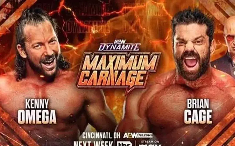 Omega circles the ring, soaking in the crowd’s chants of his name, before locking up with Cage. Cage uses his strength to send Omega into the corner, but Kenny slips out and lands some strikes on the Machine. A pair of chops have little effect on Cage, who sends Omega to the ropes, but Kenny keeps his momentum. Omega drives Cage into the corner with a running shoulder attack, but Cage retaliates with heavy strikes, forcing the action back to the center of the ring.