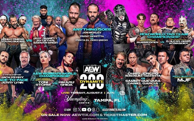 Tonight promises another exciting night of action as it is the 200th episode of Dynamite. We will get to witness Aussie Open defend the ROH World Tag Team Championship against El Hijo Del Vikingo and Komander. Also scheduled for tonight is a triple-threat match between Jon Moxley, Trent Baretta, and Penta El Zero Miedo. The complete match card is as follows: