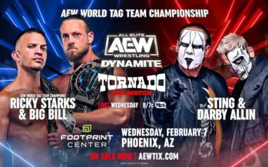 The match starts off fast as Sting and Darby Allin doesn’t waste time in going after the champions. The fight then spills to the floor, with Big Bill sending Darby Allin into the barricade and Sting brawling with Ricky Starks into the fans. Sting then grabs a garbage can and attacks Starks with it. Big Bill then nails Allin with some big chops, but Allin fights back and Sting climbs up to hit a crossbody to both opponents.