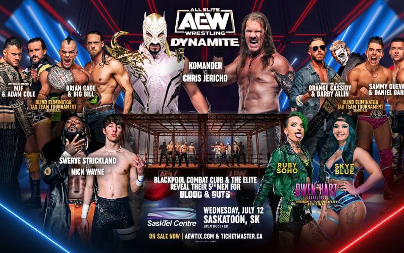 Tonight promises another exciting night of action as the Blind Tag Team Eliminator Tournament continues. We will also get to witness who the Blackpool Combat Club and The Elite will pick as their 5th member for Blood & Guts. The complete match card is as follows: