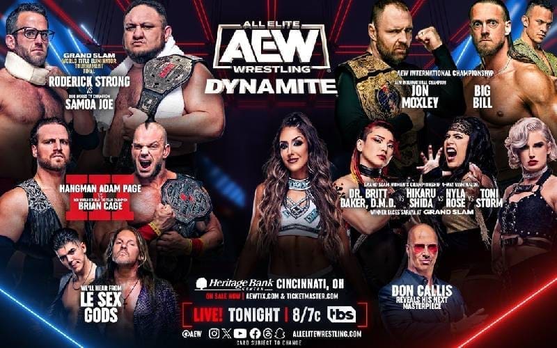 Tonight promises another exciting night of action as Roderick Strong faces Samoa Joe in the Grand Slam Tournament Finals, and Jon Moxley defends his AEW International Championship against Big Bill. The complete match card is as follows: