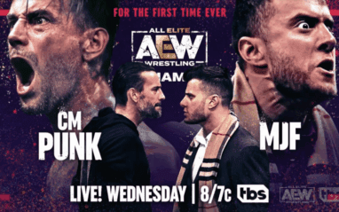MJF tortures Punk’s leg, Punk with a roll up, 2 count. Punk hits a leg lariat, high knee in the corner. MJF bites Punk’s hand, then bites at his head. Punk bites at MJF’s head, then hits the Pepsi Plunge!! Punk can’t make the cover, MJF rolls out of the ring. Back in the ring, MJF with a rollup, 2 count. Punk hits a roundhouse kick then climbs to the top. Punk hits a big elbow drop, cover, 2 count!