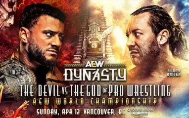 Tonight’s AEW Dynasty airing April 12, 2026, promises an action-packed night live from the Rogers Arena in Vancouver, British Columbia, Canada. The show sees AEW World Champion “The Devil” MJF defend his title against “The God of Pro Wrestling” Kenny Omega. Plus, AEW World Tag Team Champions FTR (Cash Wheeler and Dax “The Axe” Harwood) will defend their titles against Cage and Cope (Christian Cage and “The Rated R Superstar” Adam Copeland).