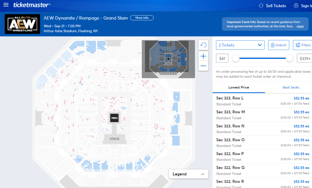 The sales figures for the upcoming September 21st AEW Dynamite Grand Slam are in. While they are not low by any means, it seems that AEW might not see a complete sellout for the show in Arthur Ashe Stadium.