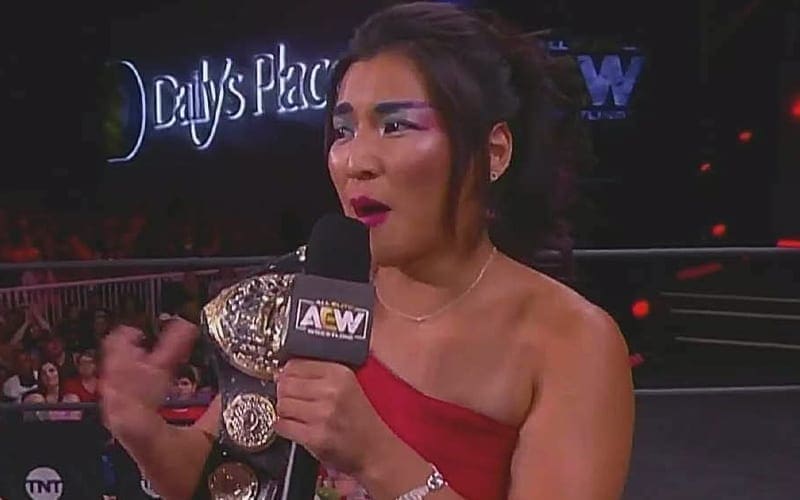 AEW celebrated Hikaru Shida tonight during AEW Dynamite. Shida carried the AEW Women’s World Title throughout the pandemic. Then she got to celebrate in front of fans. She also got to cut a promo on a live microphone to address those live fans.