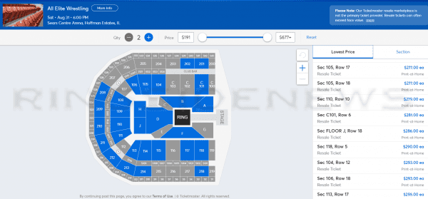 However, there are now a few tickets that were apparently just recently released for All Out. They aren’t cheap, but there are currently 246 tickets that have opened up around the Seats Centre as of this writing.