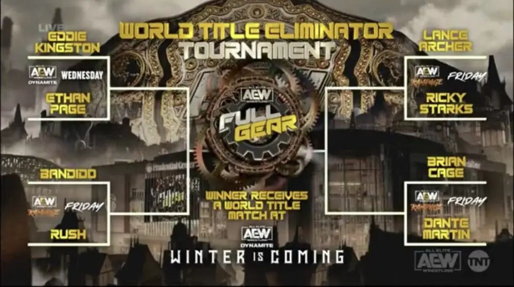 AEW announced a World Title Eliminator Tournament to determine the next challenger to the winner between Jon Moxley and MJF for the world title at Full Gear. The company revealed the tournament bracket during Rampage this week.