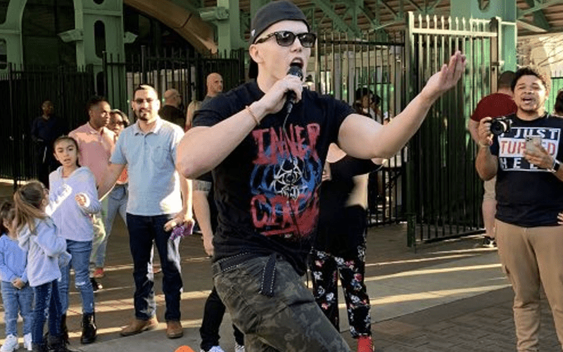 You can check out a video below of Sammy Guevara cutting a promo on fans as they made their way to one of WWE’s big 4 events.
