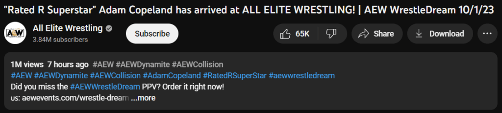 Fans were excited about the fact that Adam Copeland had a chance of debuting in AEW ever since reports of his contract expiry made rounds online. Even then, fans weren’t sure if the Rated R Superstar would actually debut in AEW. Of course, Copeland shocked the world after debuting at AEW WrestleDream last night and now his debut has racked up insane numbers on YouTube.