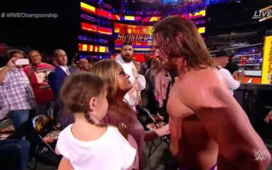 Samoa Joe won the match by DQ. Styles lost his mind in front of his family and a packed Barclays Center. He felt awful about it on the way out of the building and apologized profusely to his wife and daughter saying it wasn’t like him