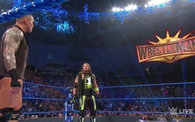“You want your rent, Randy?” AJ Styles asked while pointing at the WrestleMania sign. This concluded the segment, but a WrestleMania challenge was certainly issued. Because all you have to do is point at the sign.