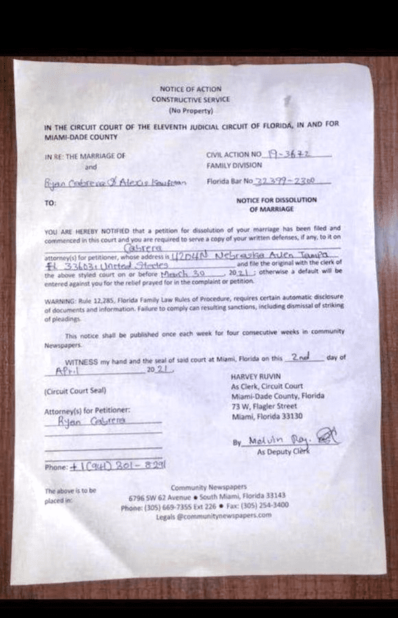 Before getting engaged in November 2020, Ryan Cabrera and Alexa Bliss were romantically together for almost a year. Cabrera has been active in the pop music industry since 2001, and he is currently legally married to seven-time Women’s champion Alexa Bliss. However, recently, Bliss shut down a fan who received a fake notice for the dissolution of her marriage filed by her husband.