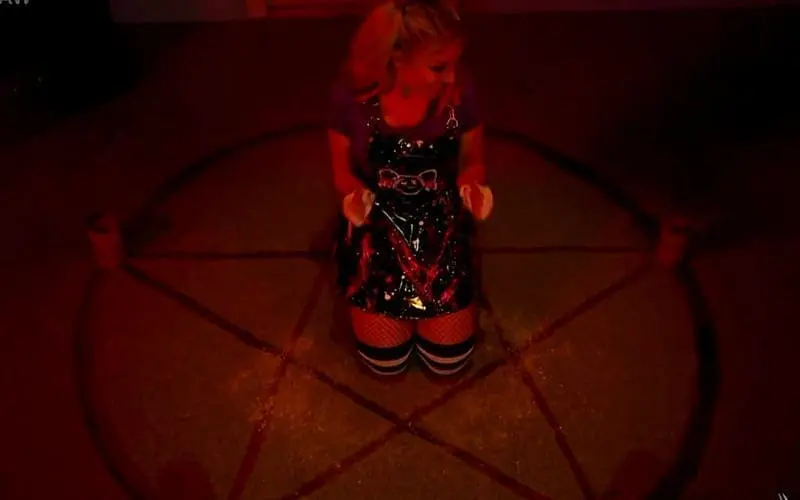 When the camera panned out, it revealed that Alexa Bliss was sitting inside of a pentagram. This was followed by Bliss laughing manically until the short segment ended.