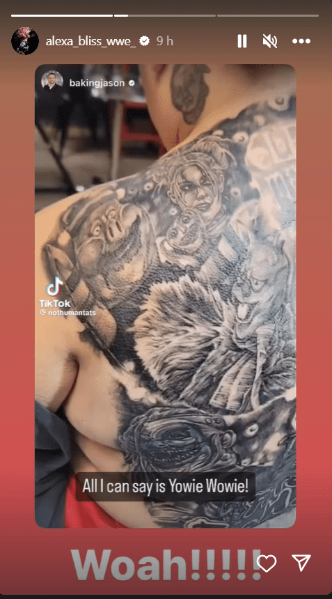 A WWE fan recently uploaded a video, where they showed off an insanely detailed back tattoo of Alexa Bliss, Bray Wyatt and numerous other references. Bliss took to her Instagram story and reacted to the tattoo, making it clear that she was very impressed.