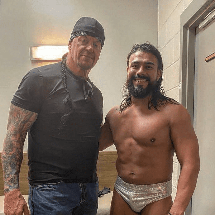 The Undertaker was in attendance for Ric Flair’s match as well. The WWE Hall of Famer was spotted sitting beside fellow legends Mick Foley and Bret Hart for Flair’s farewell match inside the Nashville Municipal Auditorium. Taker also posed with Andrade for a snap backstage after the match.