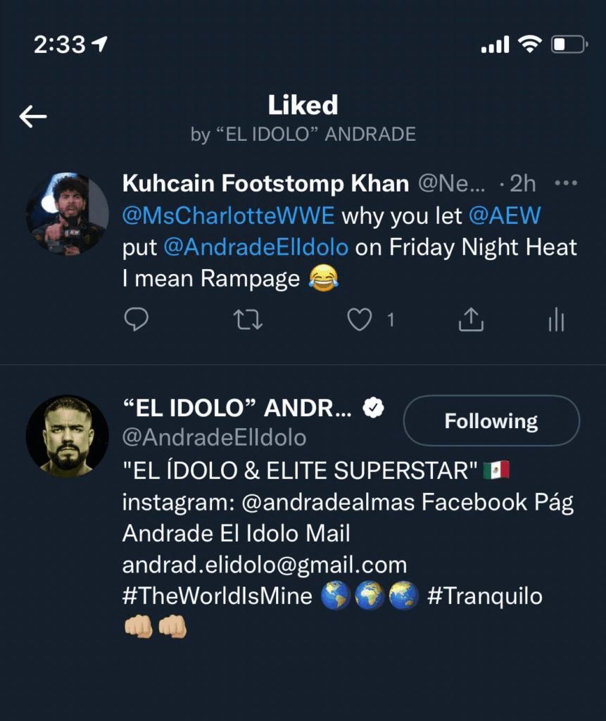 Despite the fact that this tweet was an apparent dig at AEW Rampage, Andrade liked the tweet. Perhaps he didn’t understand the perception of Friday Night Heat, but it appears he liked a negative message about his spot on AEW programming.