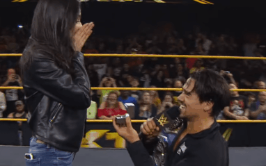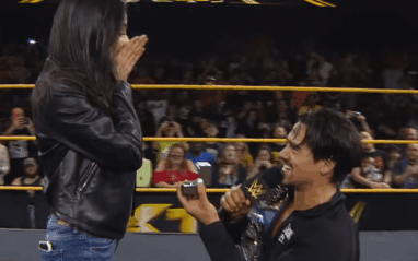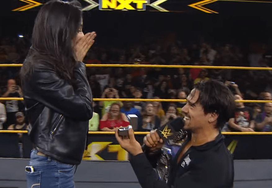 After he won the NXT Cruiserweight Title, Angel Garza came back out to the ring in street clothes. He brought his girlfriend into the ring and proposed to her. She said yes and it was a huge moment for him.