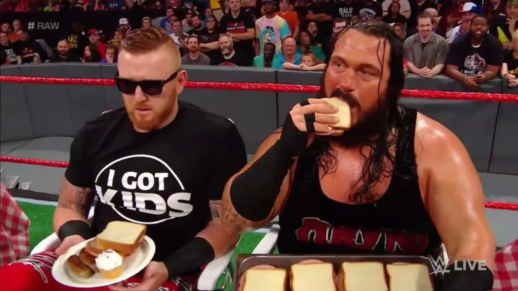 The B Team had a BBQ this week on Raw to win over the tag team division’s favor and it did not turn out well at all for them. They found themselves covered in fixings but when Kurt Angle booked a #1 contender Tag Team Battle Royal for next week, Curtis Axel had to give Angle a sloppy hug.