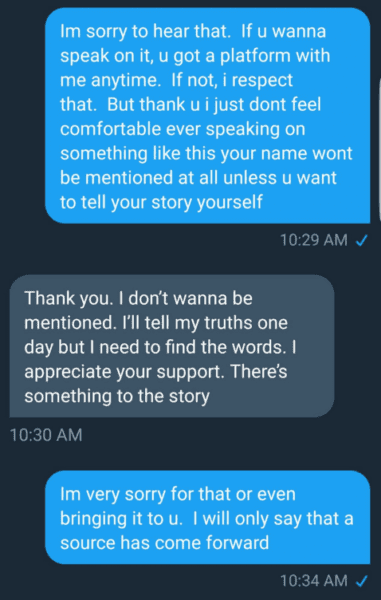 “This is a young girl that has a very close tie to Jay. That's why I reached out to her and definitely wasn’t expecting the answer I got. She just wants people to know that Taeler is not as awful as fans are making her out to be. She also told me there are others, but I can’t confirm any others. She is a pretty well known wrestler around the Florida promotions and is on TV.”