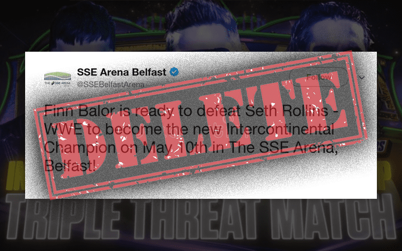 It was reported on Sunday that the Belfast SSE Arena may have spoiled the WWE Intercontinental Championship match outcome for WrestleMania after they indicated on Twitter that Seth Rollins may be leaving WrestleMania as the new Intercontinental Champion.