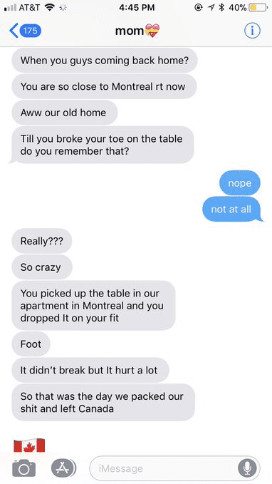"found old screenshots of texts with my mom i miss her and wish i could ask about more stories wow"