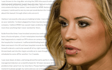 I was thrown in the ring after winning the 2005 diva search with absolutely no training which ultimately caused many injuries. I’ve had multiple documented concussions during my career. I was treated by WWE doctors and after leaving the company I continued to see my own personal doctors for treatment. I found out about this lawsuit through others who are on it.