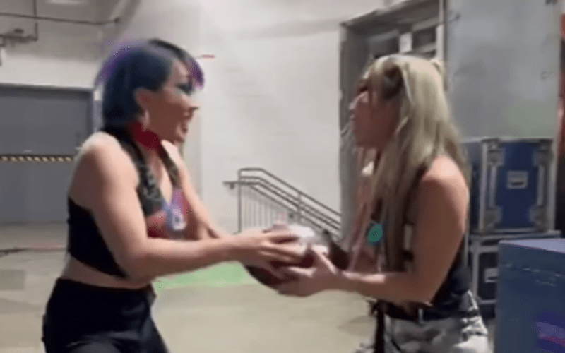 After being asked to show his best NFL touchdown celebration, the Wise Man berated the cameraman and through the NFL ball right in his face. However, WWE Women’s Tag Team champions Kairi Sane and Asuka showed sportsmen spirit for the Super Bowl.