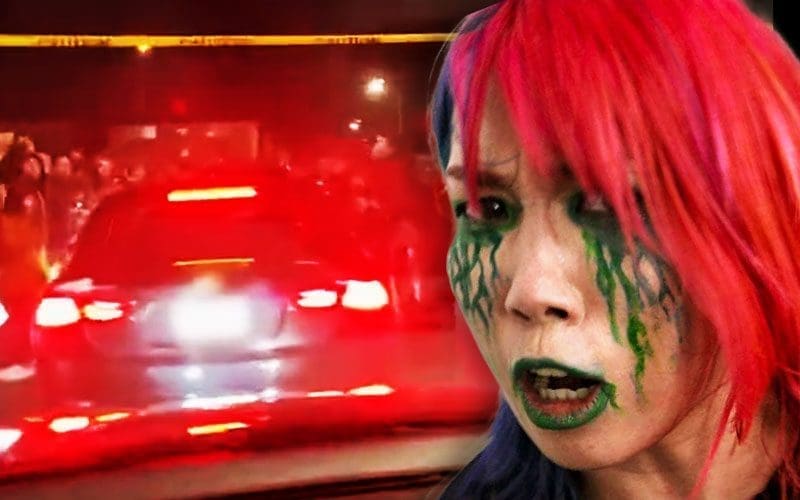 Asuka participated in the Women’s WarGames match at Survivor Series on Saturday night, joining her Damage CTRL teammates in a battle against Charlotte Flair, Becky Lynch, Bianca Belair, and Shotzi. While Damage CTRL did not emerge victorious, the night held further events for the Empress Of Tomorrow. After the night was over, she had a bit of a fender bender.