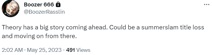 "Theory has a big story coming ahead. Could be a SummerSlam title loss and moving on from there."